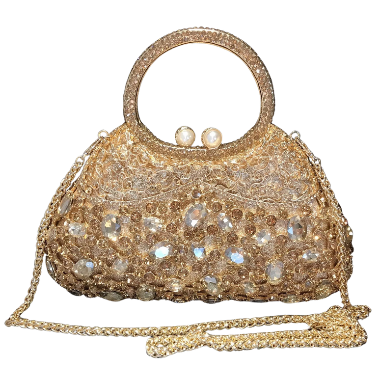 Parıldayan Göz Alıcı Çantamız, ekstra lüksün en iyisini temsil ediyor. 1 Sınıf astarlı yüksek kaliteli Deriden üretilen bu güzel çanta, yuvarlak bir sap ve güzel bir ışıltılı, parlak yapay elmaslarla süslenmiş bir kapağa sahiptir.